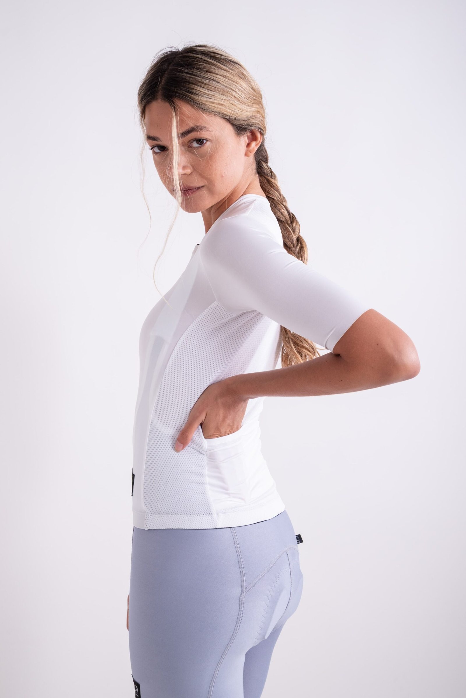 • Ultra liviano. • Rápido secado. • Mayor elasticidad y ergonomía. • Cierres YKK semiautomático de 3mm de apertura rápida. • Diseñada para pegarse a la piel, con un tejido elástico que envuelve el cuerpo. • Recomendada para climas calurosos y húmedos. • Además de los 3 bolsillos traseros reforzados de buen almacenamiento sumamos un cuarto para geles y objetos pequeños. • Espalda micro calada, ofrece mayor transpirabilidad. • Posee elástico antideslizante con gel en la parte inferior para evitar movilidad. • 92% Polyester, 8% Elastano. • Los estampados se realizan con tintas amigables con el medio ambiente. • Manga sin dobladillo.