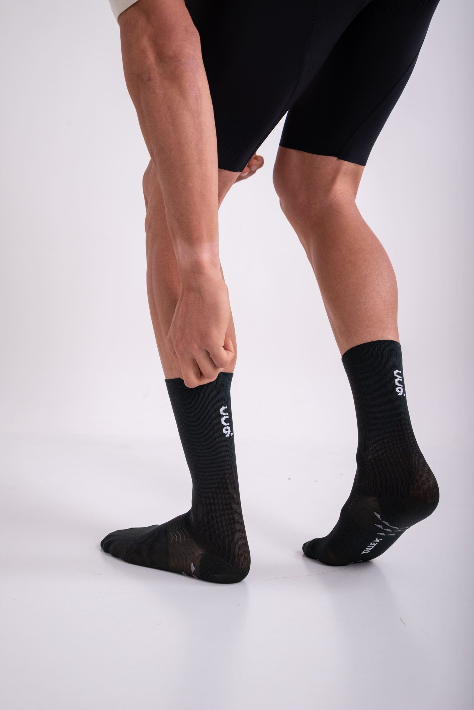 Medias técnicas de compresión graduada, diseñadas para pedalear cómodamente, de secado rápido y fibras tecnológicamente estudiadas para generar la mayor ventilación posible. Poseen protección de puntera y reforzada en los puntos críticos para así brindar más seguridad, firmeza y comodidad al pie. Contiene elastano que proporciona un mejor ajuste en el pie. Viene en tres talles diferentes para que se adapte mejor a diferentes tamaños del pie.